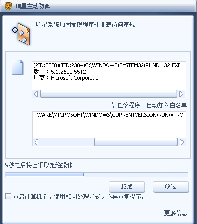 每次启动计算机后,总是提示要修改注册表启动项,内容如下: