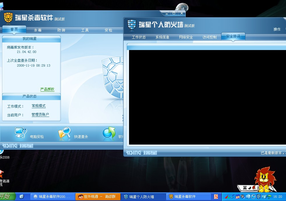 反映了很多次了。。。一直老样子。。下星期在这样我还是用我的NOD32.....我两台电脑都是这样。。。笔记本也是这样。。修复了不知道多少次了。。
