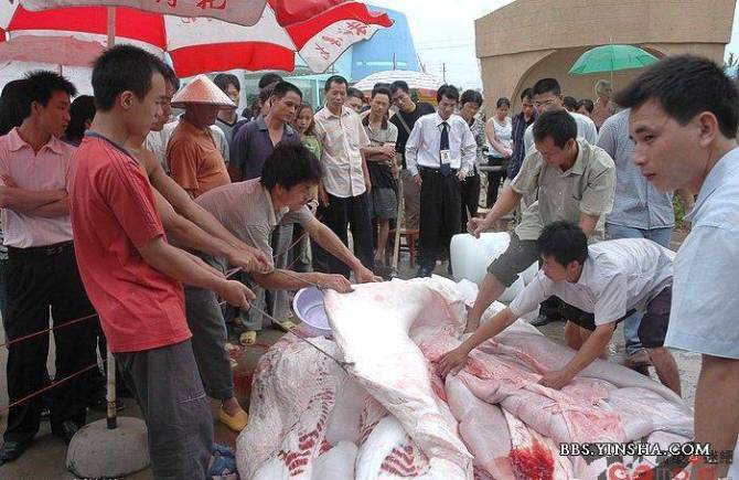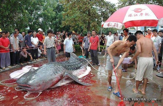 竟然是一条有三米多长,头有一米多宽的吃人塘鲺!宰割塘鲺后,惊人的发现:在其肚中竟然有人的骸骨! 由于事件影响大,当地政府怕影响当地的旅游,下令封锁消息,但却有现场的人用手机偷拍的到捕获的吃人鱼!