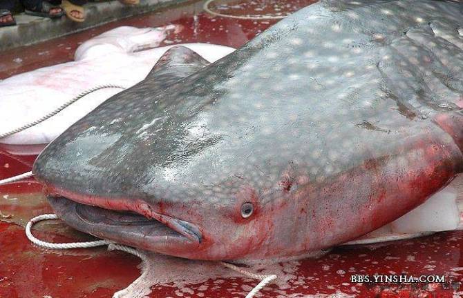 鲸鲨俗名豆腐鲨、大憨鲨,属于全球性洄游鱼种,为已知体型最大的海洋鱼类,可以成长至20公尺体重30公吨以上,分布于温带及热带海域之沿岸或外洋,性喜于表层巡游,以动物性浮游生物、甲壳类、乌贼等为食,性情温和,行卵胎生。
