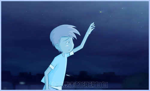 □...男孩拼命的喊 拼命的追 只能眼睁睁的看着女孩消失在天的尽头