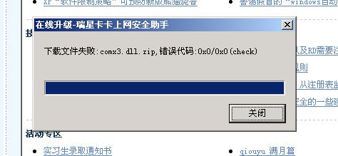 用瑞星卡卡上网安全助手很久了,之前也很正常,不知道为什么这段时间无法升级了。原先都是自动升级的,就算手动也能升级的!请高手指点!谢谢!