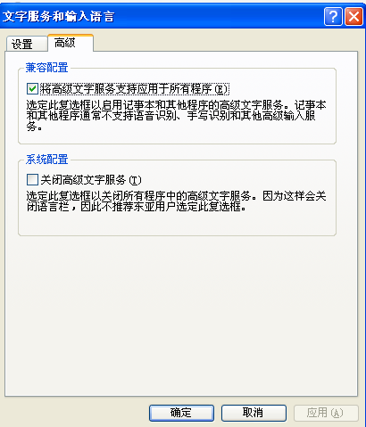 语言栏也打上勾了 控制面板----区域和语言选项------语言------详细信息-------高级选项中