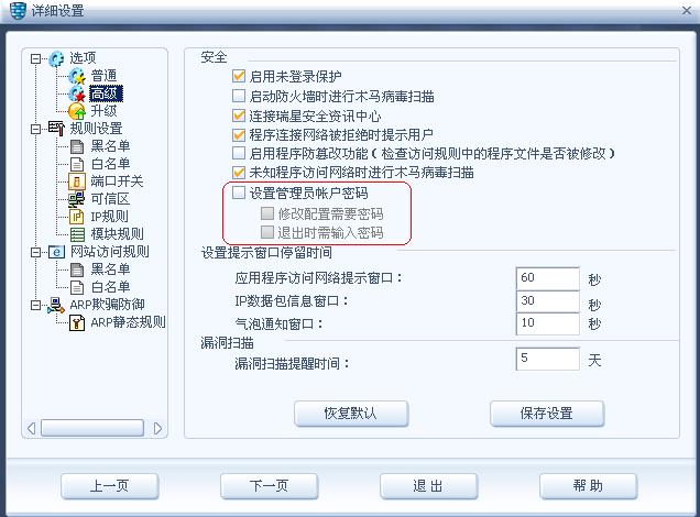 好像没这个功能,但楼主可以设置防火墙的保护密码,让其他人无法设置防火墙就可以了。