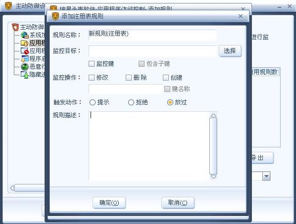 图1中,打开主动防御,选择应用程序访问控制-添加-双击*(也就是第一个选项)。