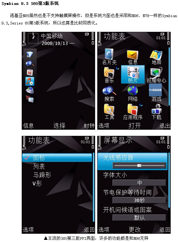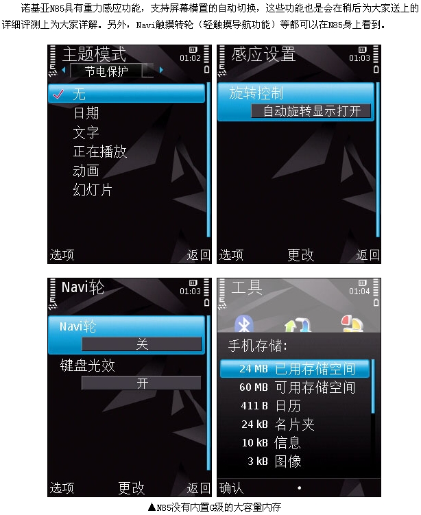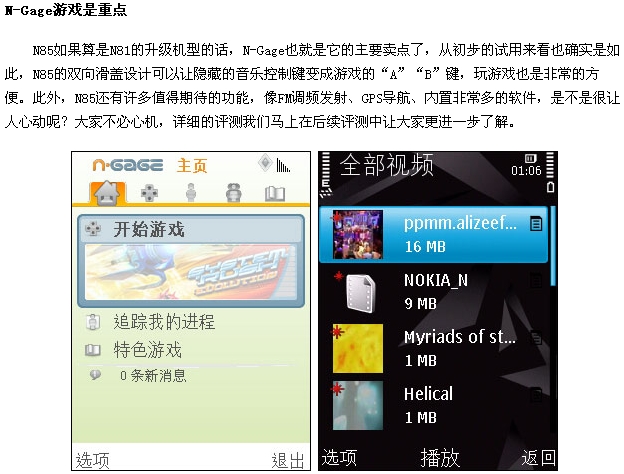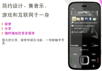 近来手机行业的热点可真是相当的多,新发布的产品也是络绎不绝,像Google(谷歌)推出的G1就是非常引人关注。而业界的老大哥诺基亚在最近也是发布不少新品,如在月初发布的触摸屏S60手机5800也是近来的热点。而之前在诺基亚八月底发布的一款N系列中高端产品N85也是网友们所关注的焦点之一。诺基亚N85有着N95/N96的双向滑盖设计,整体手感也是沿袭于备受好评的N81,功能配置相当全面。