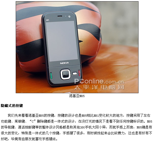 据最新消息,诺基亚N85已经开始有海外零售版开卖,而在此时,我们PConline评测室也迎来了诺基亚N85的工程样机,抢在上市之前,我们先来初步试用这款诺基亚N系列中高端机型N85。
