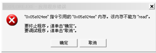 问题现象:从账号保险柜打开ie关闭时就会出现内存不能读,直接打开则正常