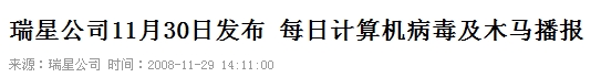 瑞星公司11月30日发布 每日计算机病毒及木马播报来源:瑞星公司 时间:2008-11-29 14:11:00