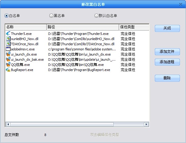 默认白名单我也不知道什么时候我电脑的全部可信任工具他自己就自动全部在那里面了。。