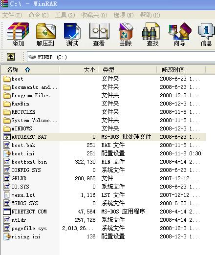 用解压工具WinRAR打开磁盘看根目录下是否有不明文件: