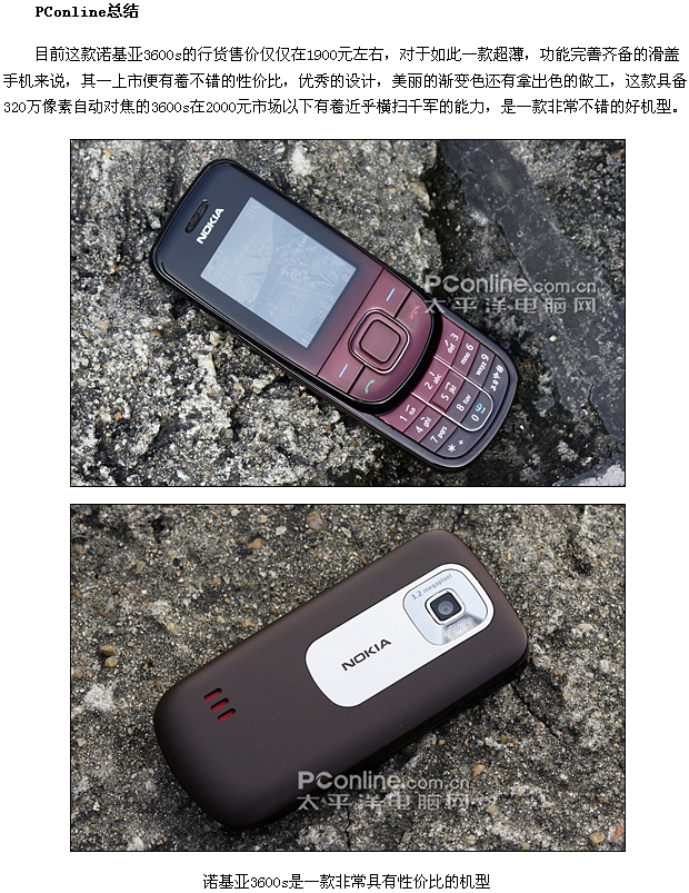 诺基亚近期新机倍出,并且针对的市场各有着重,特别是对于目前2000元以下的市场,诺基亚目前是相当的着重,在近期上市的诺基亚3600s便是一款战略性的产品,极高的性价比和优秀的功能均是其最佳的看点。最重要的是其在具备陶瓷烤漆工艺、超薄滑盖以及内置320万像素自动对焦摄像头的同时售价还不足2000元,性价比非常的出色。对于这款诺基亚近期主打的新机,相信大家都非常的感兴趣,在此我们也对其进行了详细的试用,让大家来一同感受这款冲击中低端手机市场的诺基亚3600s。