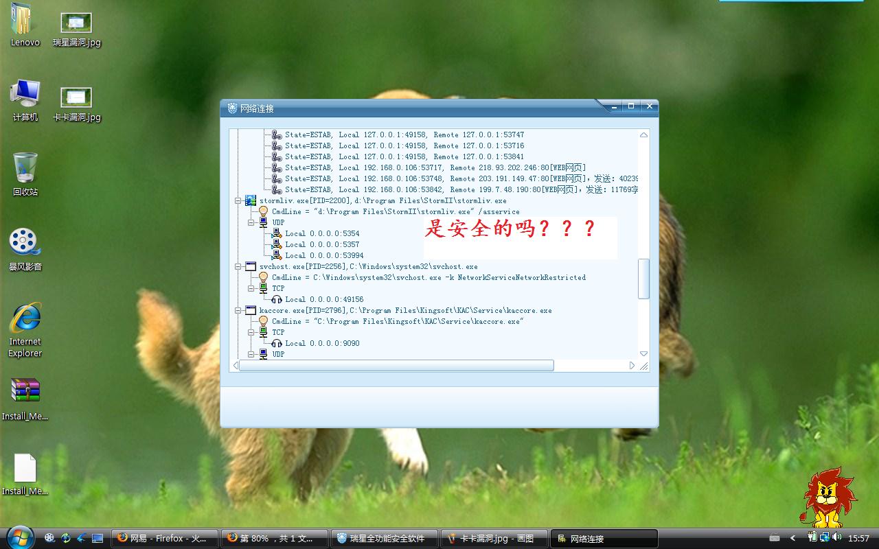 卡卡和ris的扫描结果理论上应该是一致的,建议楼主把卡卡卸载重装一次吧,如果仍然不一致,把补丁号提交上来吧。关于安全信息的问题我是这样理解的,进程里可以显示安全信息,是因为瑞星可以通过程序文件的md5值帮我们判断该程序是否安全,但是网络连接是无法判断是否安全的。