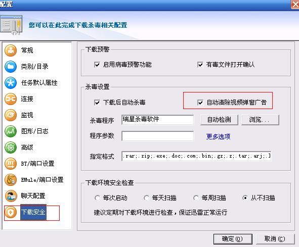 下载完成后迅雷即可自动查杀视频文件里的弹窗广告
