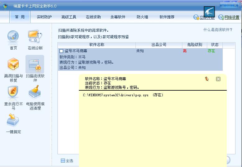 进来发现瑞星卡卡6.0会包超级巡警的病毒免疫文件为盗号木马。请工程师改进