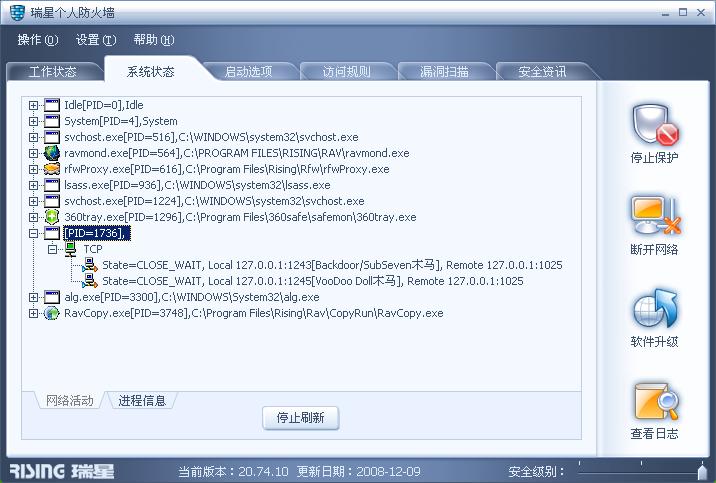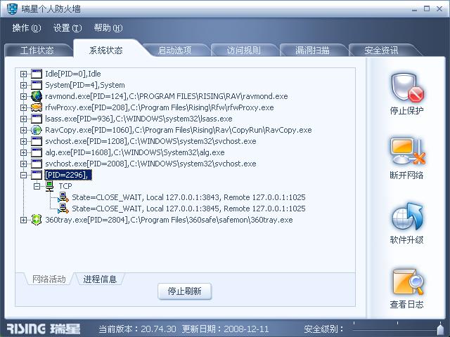 我升级到瑞星防火墙2009,暂时没有发现这个现象。