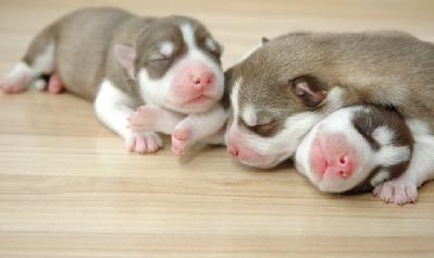 这个就是我们了,刚刚生下来没几天,粉嘟嘟的,狗麽麽是个没经验的麽麽,我们要生时还带着妈妈逛街,妈妈生我们时难产,狗麽麽帮忙把我们一个个拔出来的,我们小小滑滑的吓得狗麽麽手都抖得,还好有惊无险,我们现在都很健康,而且非常的肥