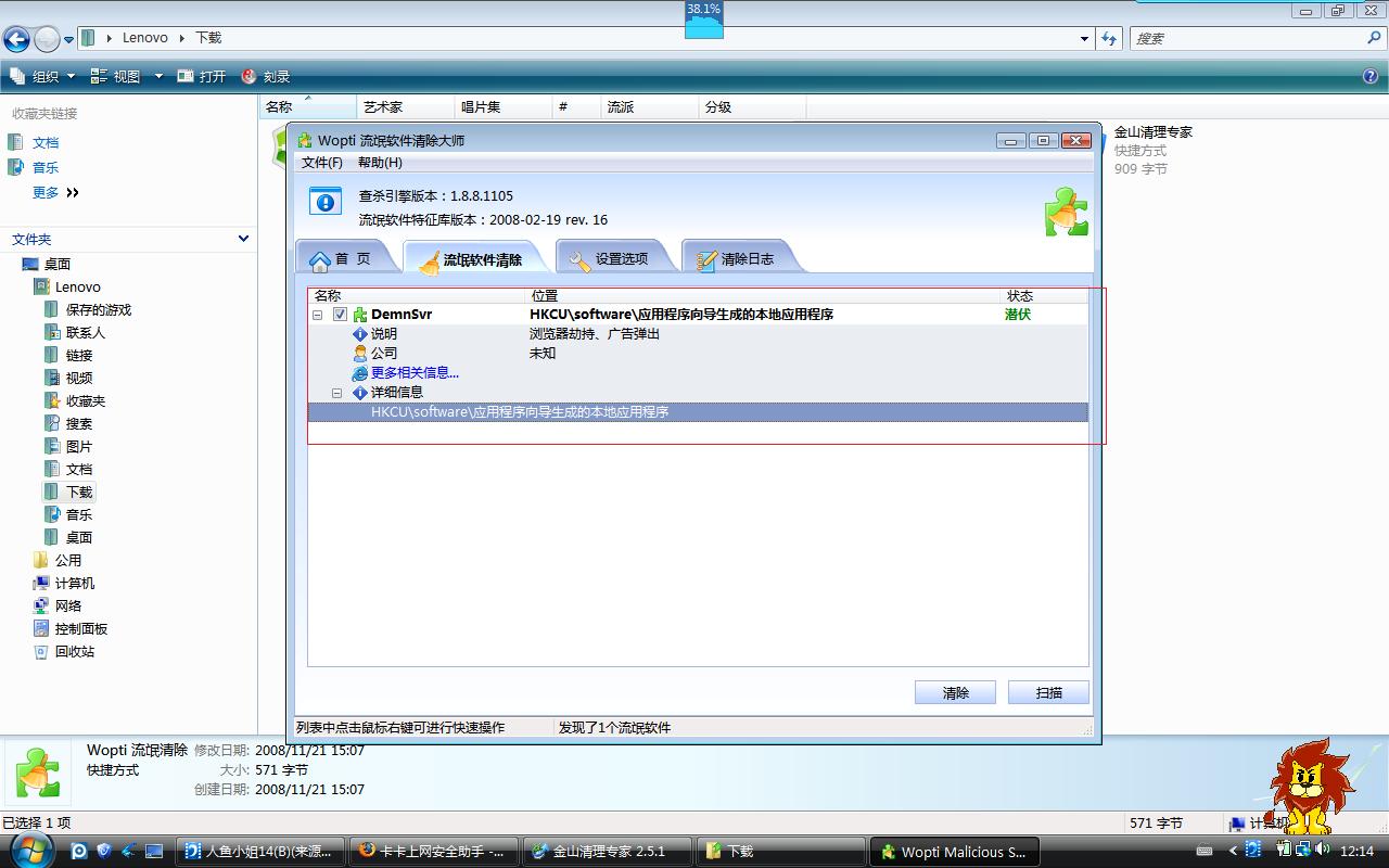 查看完整版本: 用windows清理大师和金山清理专家分别发现恶软,而卡卡一无所获!!!