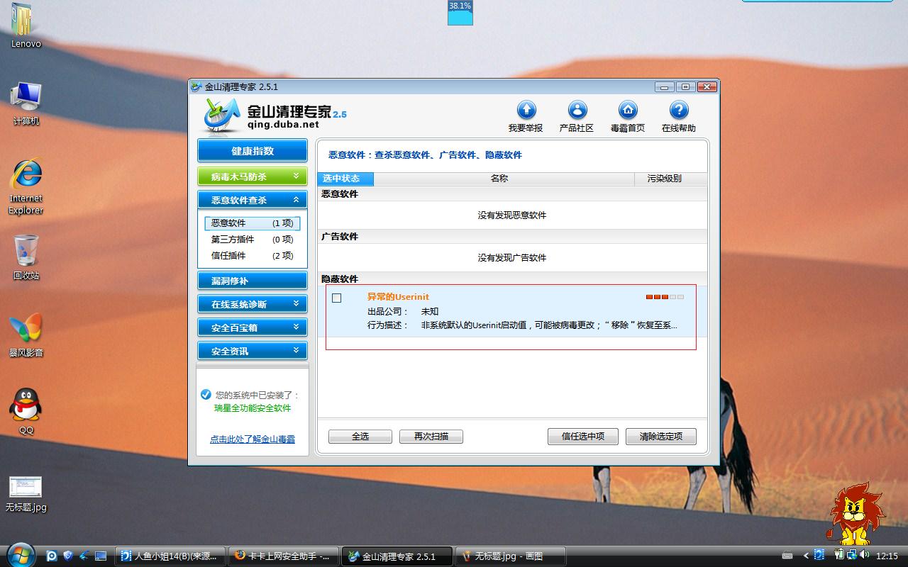 用windows清理大师和金山清理专家分别发现恶软,而卡卡一无所获!!!