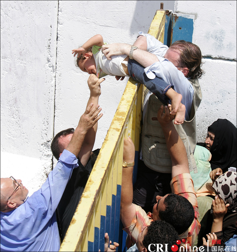 加沙地带拉法边境:自2007年6月哈马斯武力控制加沙地带后,以色列一直对加沙地带实施封锁。2008年6月1日,埃及向巴勒斯坦人打开拉法边境点,允许被困在埃及和加沙的巴勒斯坦人通过,寻求医疗救助。图中,几名巴勒斯坦人尝试将一名孩子从加沙地带南部的拉法边境门上递过去。(图片来源:CFP)