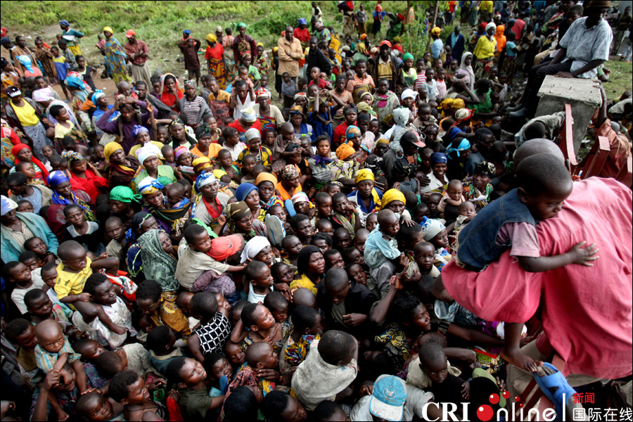 刚果戈马:2008年11月1日,数千刚果难民聚集在美国国际开发署旁边的难民营门口。(图片来源:CFP)