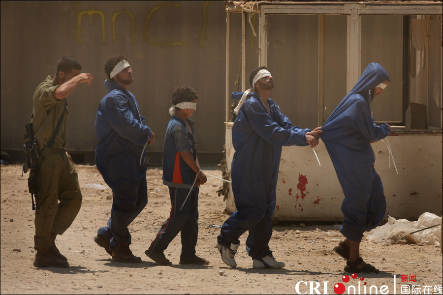 以色列纳哈勒奥兹:2008年8月3日,从加沙地带的哈马斯枪手手中逃出的几名法塔赫战士,被拘留在以色列军事基地中。此前,以色列国防部长埃胡德·巴拉克同意150名非武装巴勒斯坦人进入以色列避难,包括12名伤者进入医院接受治疗。(图片来源:CFP)
