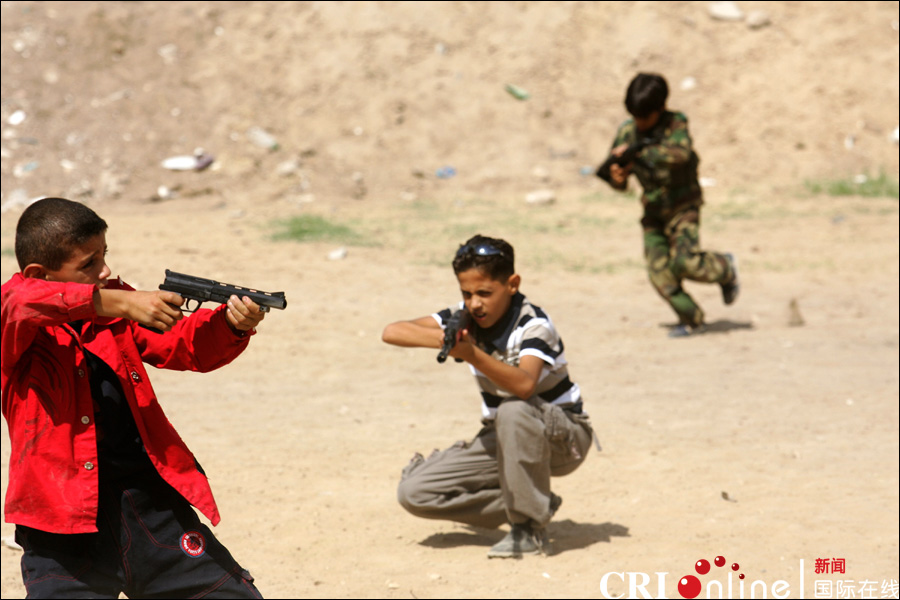 加沙:2008年10月2日,一名巴勒斯坦男孩在穆斯林节日“开斋节会礼”第三天,耍弄玩具枪。巴勒斯坦儿童保护组织称,很多巴勒斯坦的孩子在目睹了巴以双方的持续暴力冲突后,都留下了精神创伤。(图片来源:CFP)