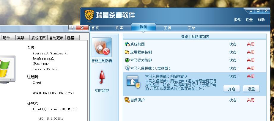 你好!我的瑞星全功能安全软件网络监控中的IP包过虑总是会自动关闭,请问是什么原因?是有病毒吗?
