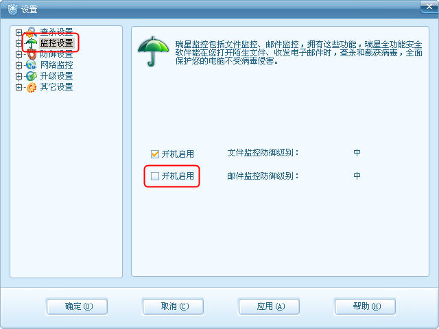 工程师帮忙解决一下,我们邮件服务器win2003(安装winwebmail ,过去用瑞星08时可以关闭邮件监控,现在自动升级到2009后,一但重启服务器,上次关闭的邮件监控又自动启动了,一启动邮件监控,公司的员工就都收不到邮件,要怎么解决这个问题呀,十万火急!!!!!!!!