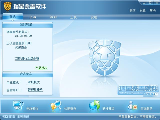 我装的是瑞星全功能版2009(老版升级68元的那种),啥问题也没有,就是发现已设置了即时升级基本上要靠手动才能升级,不知道是咋搞的,还是顶一下瑞星!