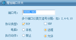 在防火墙端口开关中增加一条规则试试:16000,443;TCP;远程;放行,设置方法可见下图,