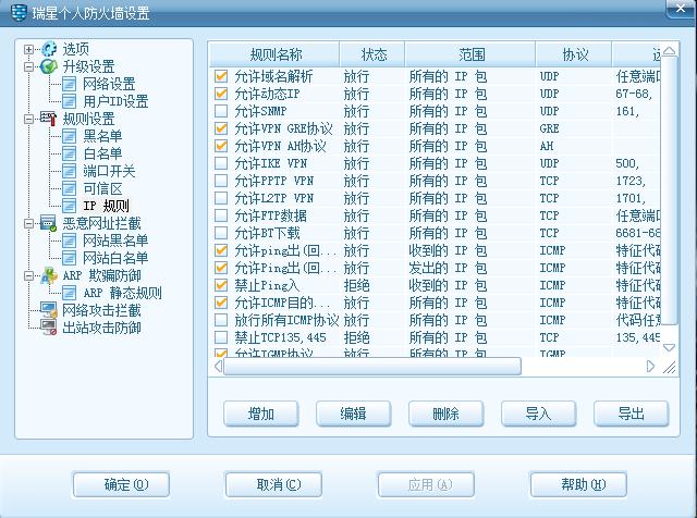 举个例子,允许BT下载这一选项,简单的说就是允许你使用bt软件来下载网络资源(程序、游戏等等)。也可根据自己的需求增加相应的规则。