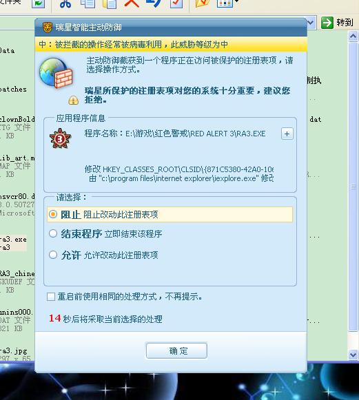 启动红警有瑞星杀毒软件的提示?