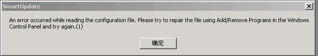 An error occurred while reading the configuration file,Please try to repair the file using Add/Remove Programs in the Windows Control Panel and try again.(1)