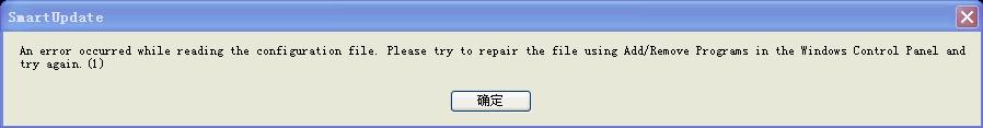 对话框提示读取配置文件时错误,需要修复或者重装。