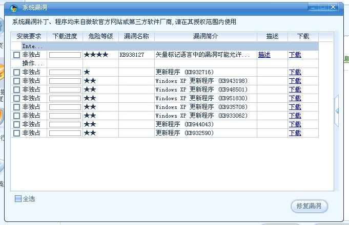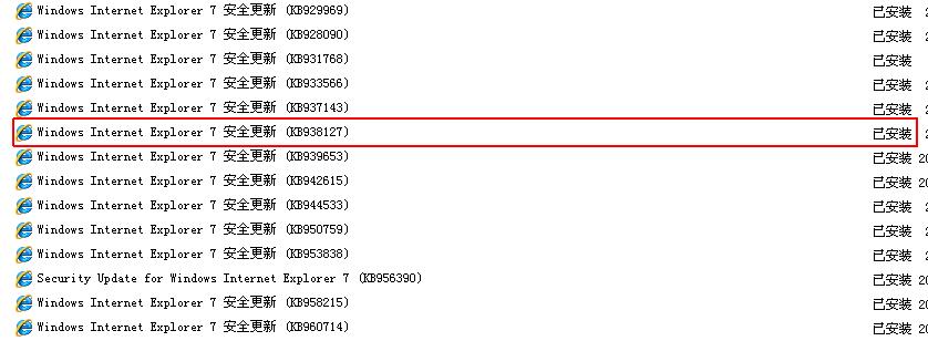 1、其中的一个扫描出的KB938127漏洞,我到控制面板里面看了一下这个补丁早已经打上了(如下图):