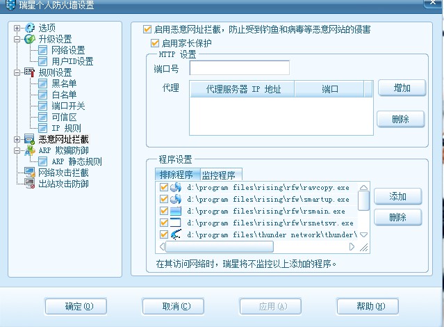 瑞星个人防火墙2009启动网页保护后无法上网,不开启保护就可以。。。请帮忙。。。见图: