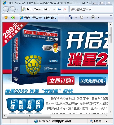 查看完整版本: 瑞星个人防火墙2009启动网页保护后无法上网,请工程师帮忙。。。