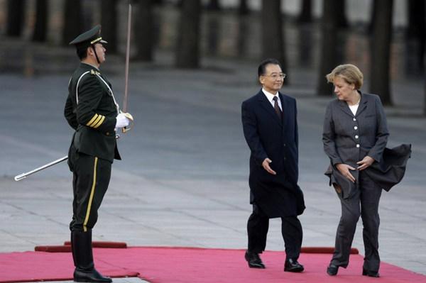 10月23日,中国国家总理温家宝在人民大会堂东门外广场为德国总理默克尔访华举行欢迎仪式,默克尔此次来华是为出席第七届亚欧峰会。