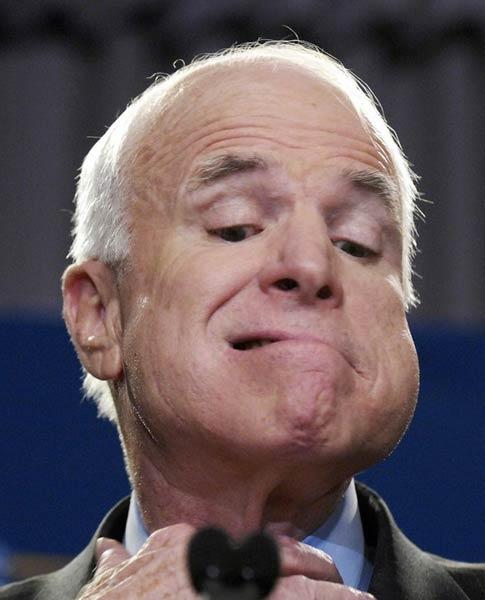 2月7日,在巴尔的摩市举行的林肯-里根日晚宴上,共和党总统候选人麦凯恩讲过一个笑话后整理衣领。