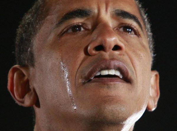 11月3日,美国民主党总统候选人奥巴马在北卡罗来纳州的夏洛特举行的竞选集会上流着眼泪谈起他的外祖母。