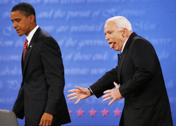 10月15日,美国纽约州霍夫斯特拉大学,奥巴马与麦凯恩进行总统选举投票前最后一场电视辩论。