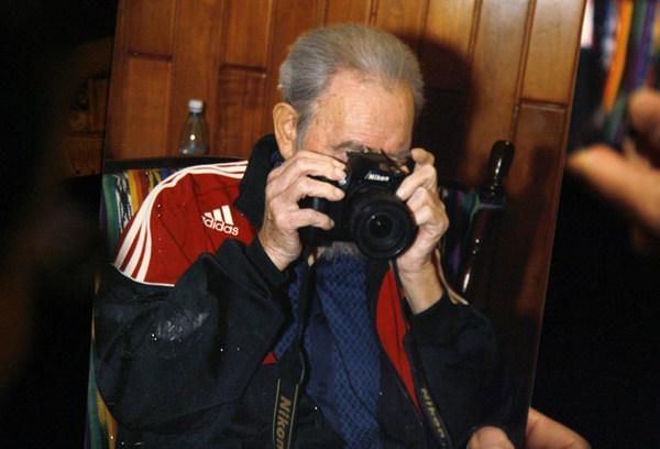 1月15日,古巴领导人卡斯特罗在与来访的巴西总统卢拉的会谈中拿着相机拍照。