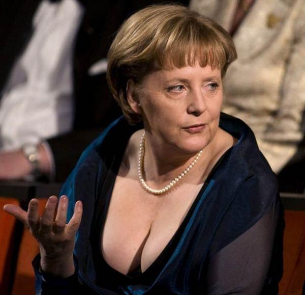 4月12日,德总理默克尔身穿性感晚礼服出席奥斯陆歌剧院开幕式。