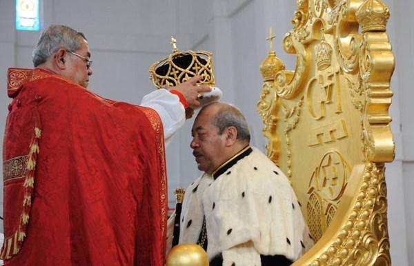 8月1日,汤加首都努库阿洛法,汤加国王图普五世身穿华丽服装参加冕庆典。图普五世特意在中国定制了一个镶有金边的国王宝座,而汤加是太平洋诸国中最贫穷的国家之一。