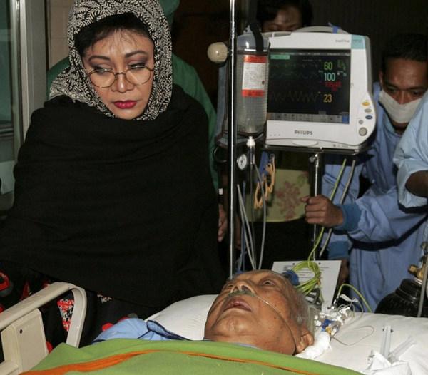 1月8日,印尼雅加达,前总统苏哈托在女儿的陪护下在一所医院进行身体检查,负责治疗苏哈托的医生表示,苏哈托在医院里的病情逐渐恶化,看来危在旦夕。