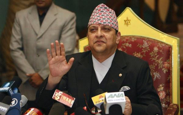 7月11日,尼泊尔加德满都,被罢黜的国王贾南德拉在纳拉阳西提王宫出席一个记者会。贾南德拉称不会流亡到国外,要继续服务尼泊尔人民。