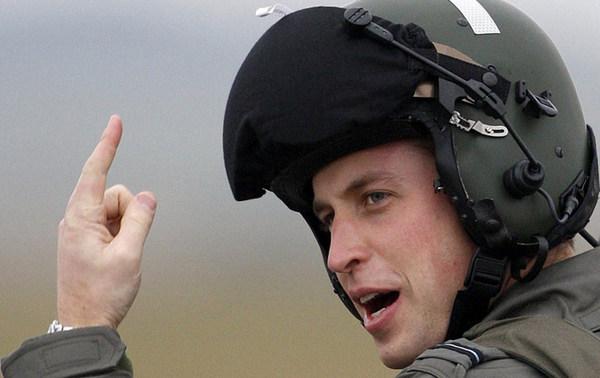1月17日,英国威廉王子在皇家空军上完飞行课后做出手势。