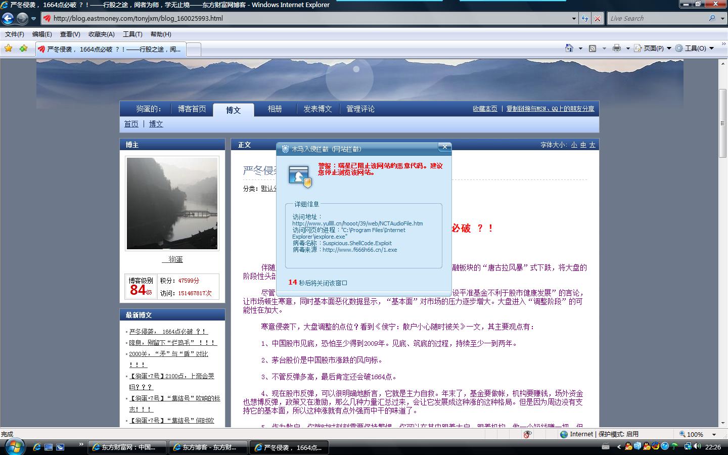 上论坛闲逛一遍,发现有人QQ和QQ空间上不了,自己试了一下,可以上呀.刚才更新文件要求重启后发现两个盾牌可以看见了.
