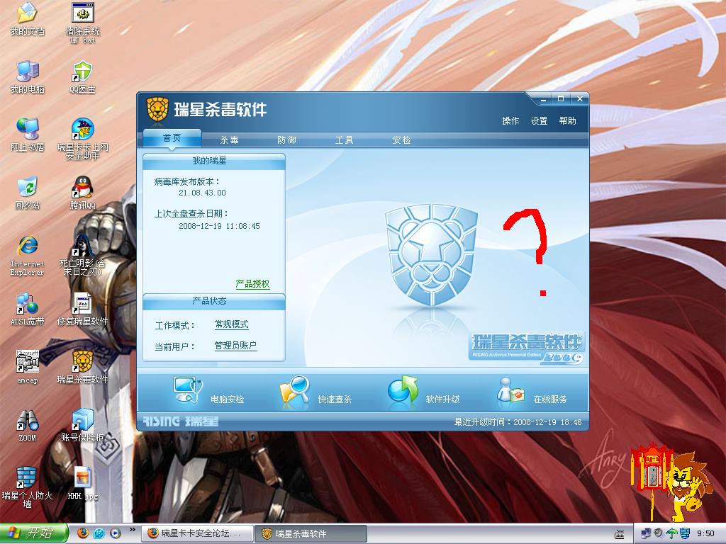 开始\程序\瑞星杀毒软件\添加删除组件\修复瑞星杀毒软件程序